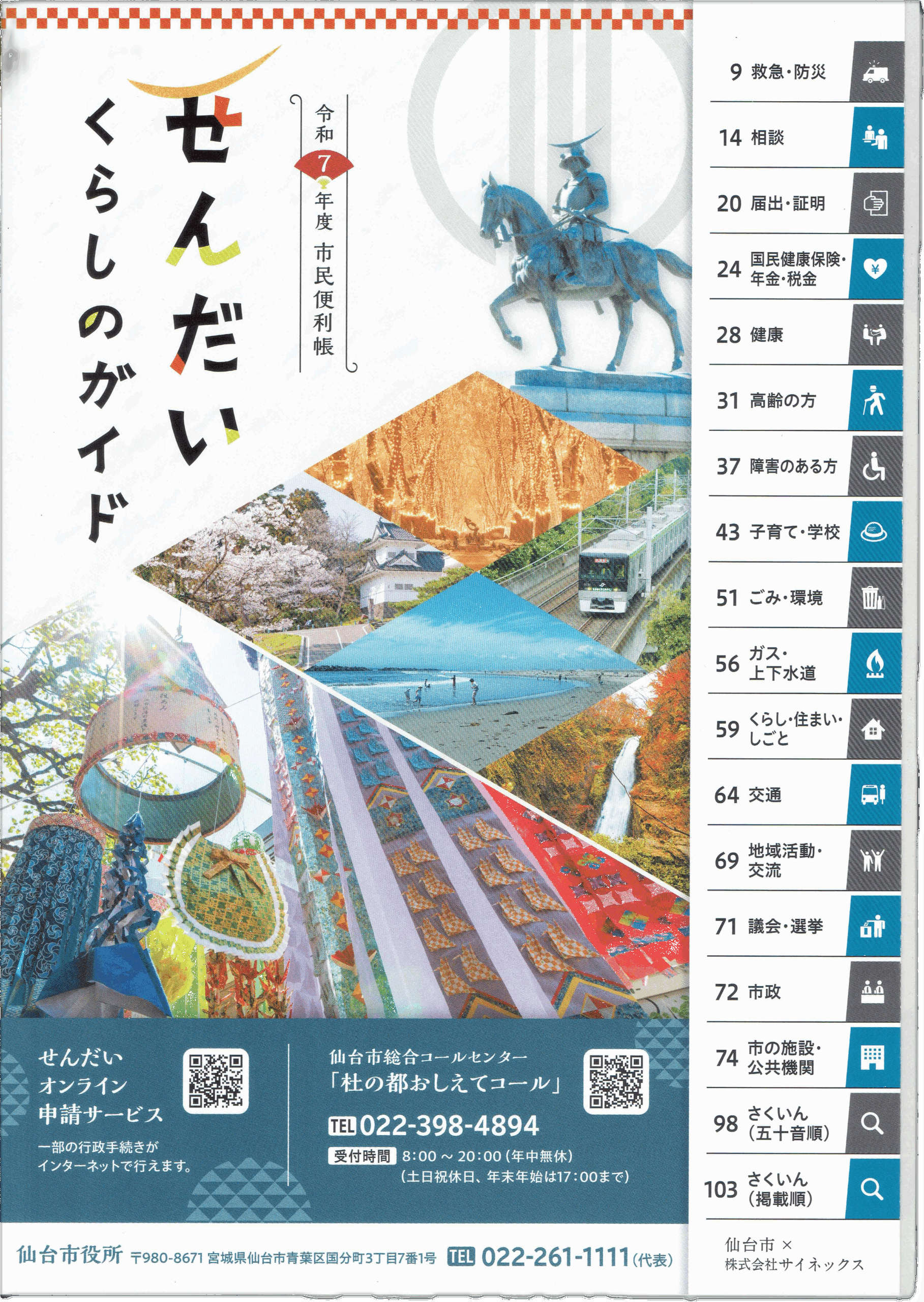 仙台市内の各区役所や総合支所、各情報センターで無料配布されている市民便利帳に掲載されました。