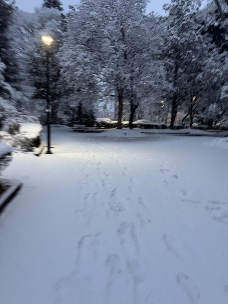 たった一晩で景色がガラッと変わり、雪景色を楽しみながら同時に雪を踏む音も楽しむことができました